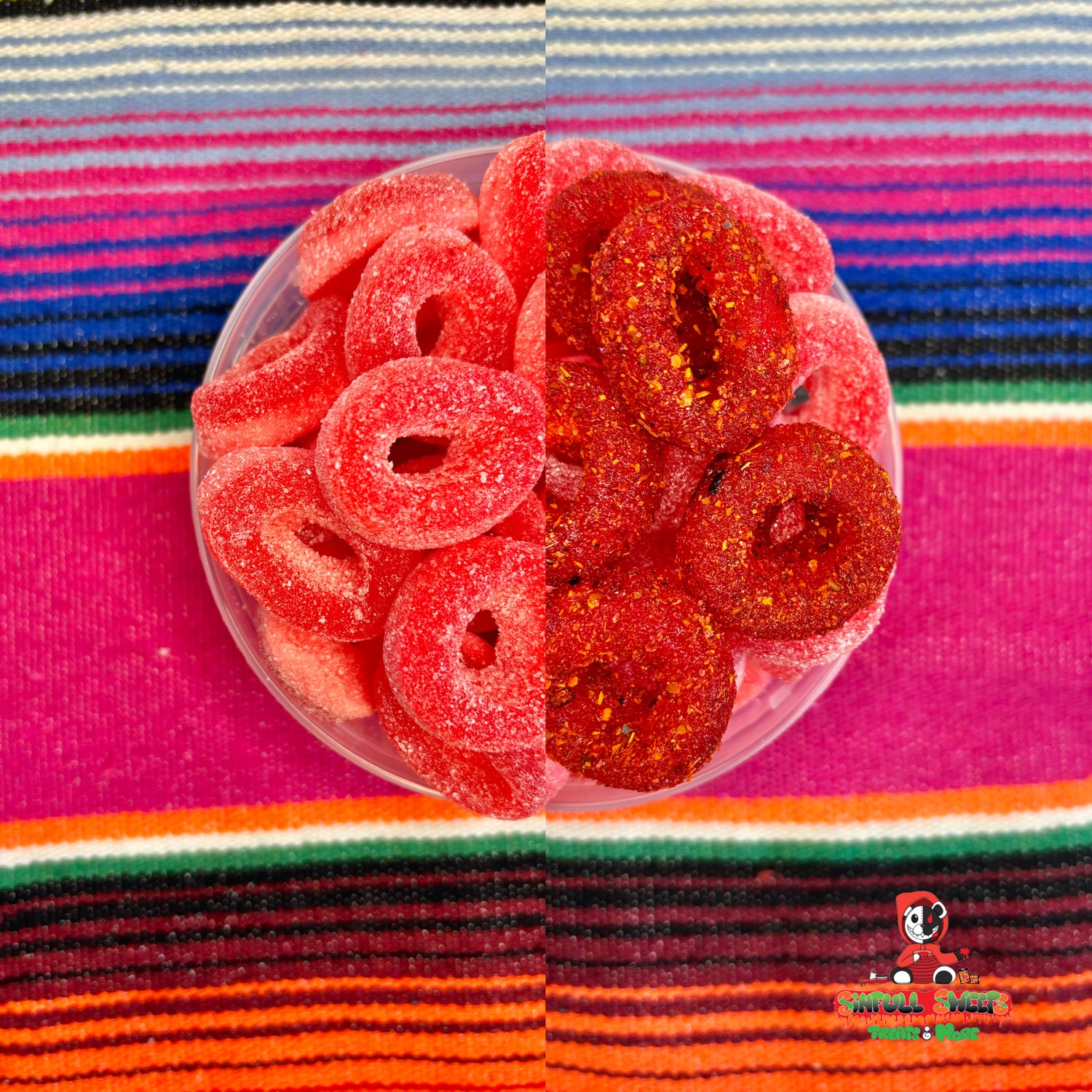 Try all of the ring candy flavors, coated with our homemade chamoy...