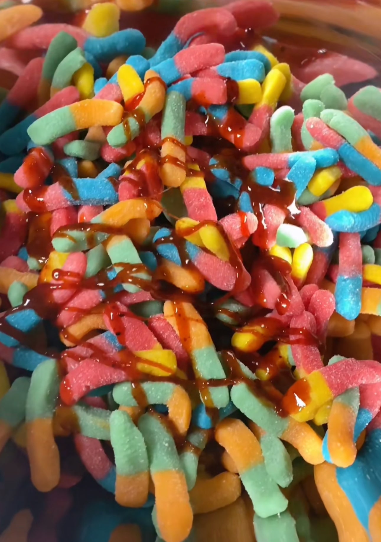 Chewy annd delicious! These sour gummy skittles are coated with our homemade tamarindo chamoy and our very own powdered mix, making it the perfect balance of spicy, sour & sweet mouth watering taste!